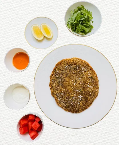 السعرات: Total weight 410 gr, Kcal 908 , Prot 53, Carb 91, Fat 36 لكل 100 جرام