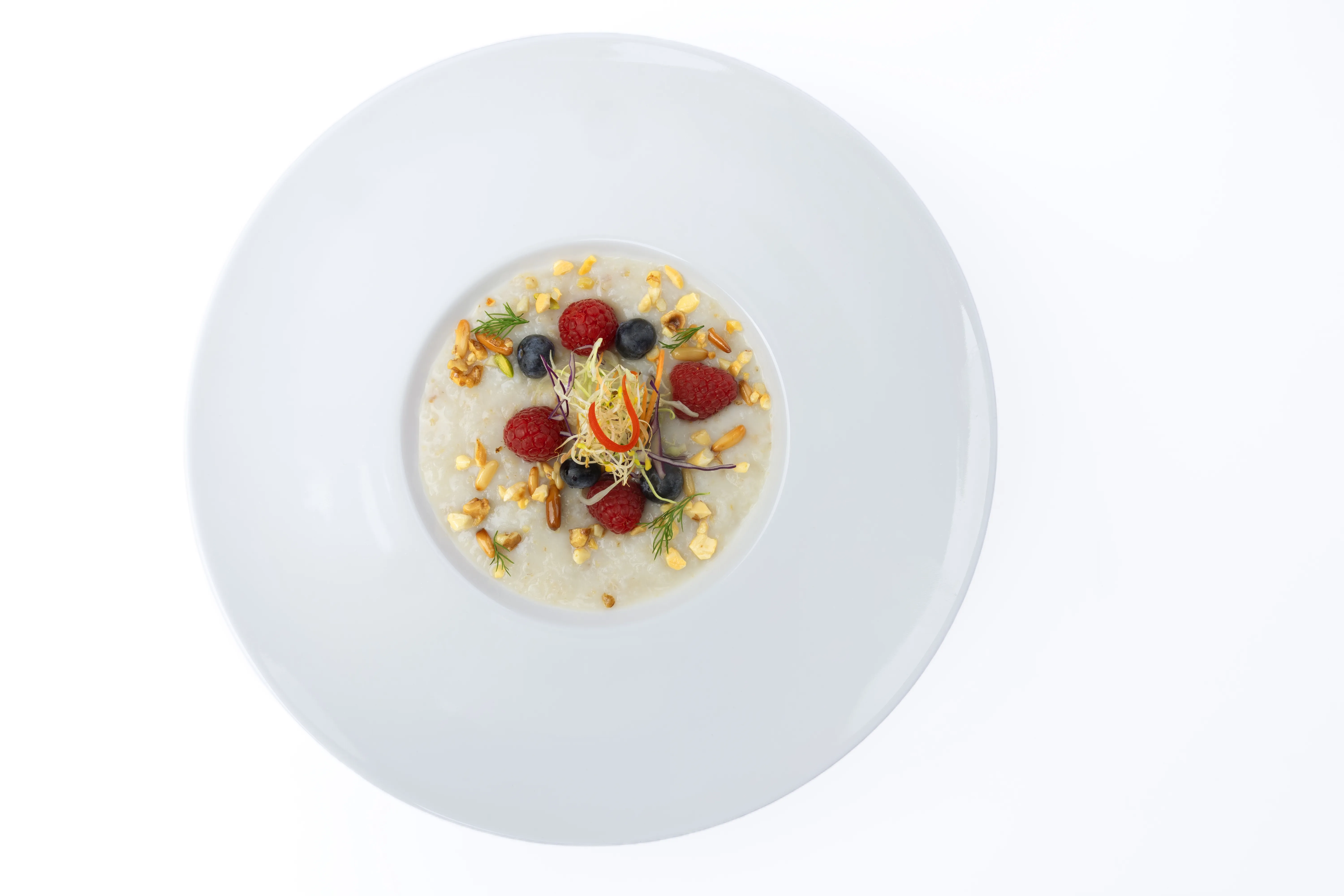 موس الفانيليا مع التوتالازرق والكافيار المحلى