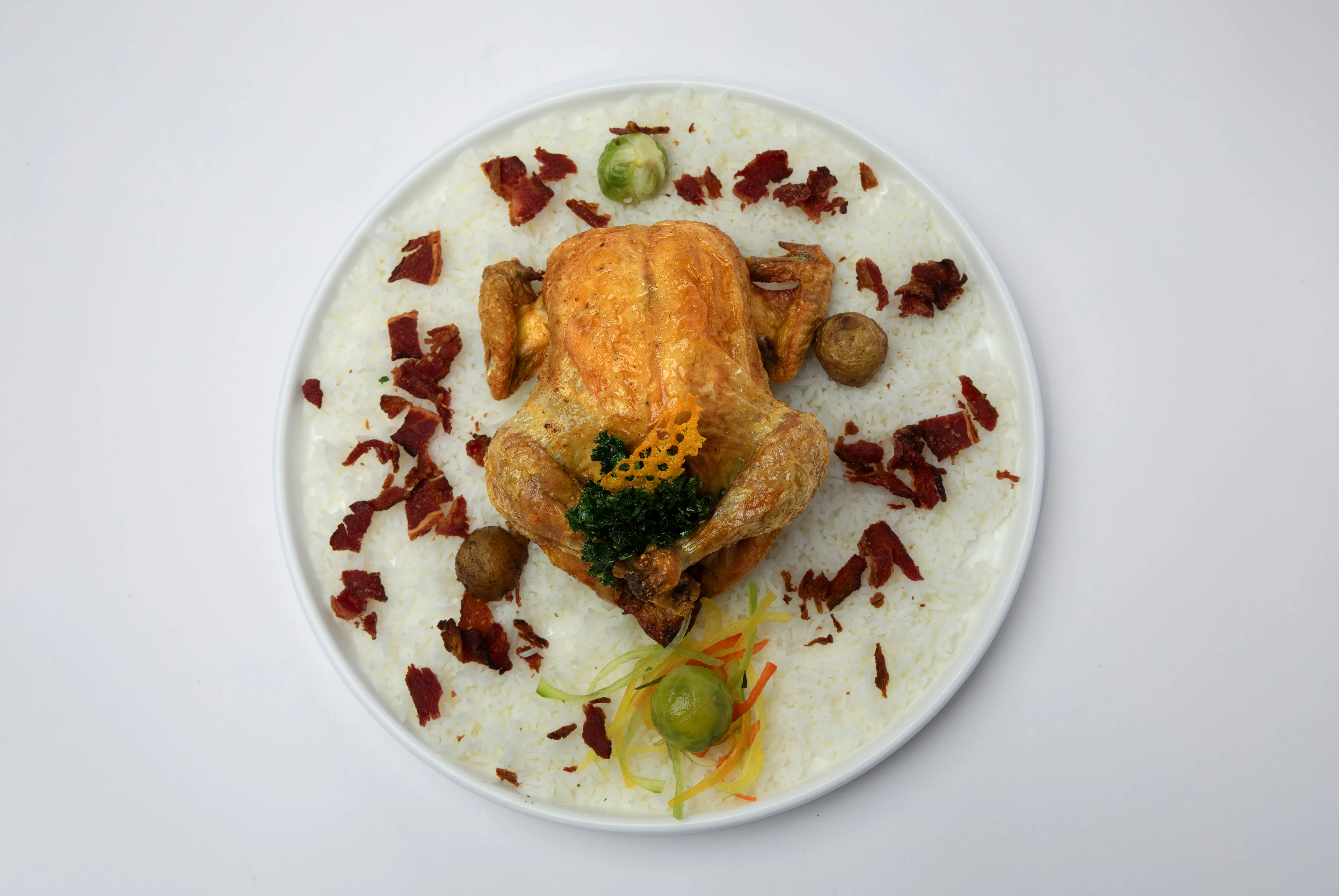 دجاج مشوي محشو أرز ولحم بيكون