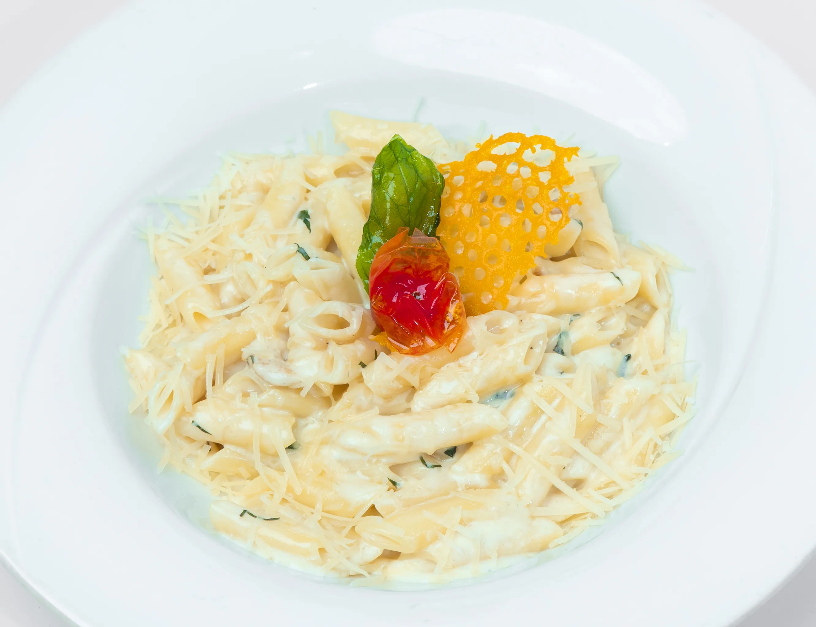 بيني باستا بالريحان الكريمي وصلصة الطماطم مع الدجاج