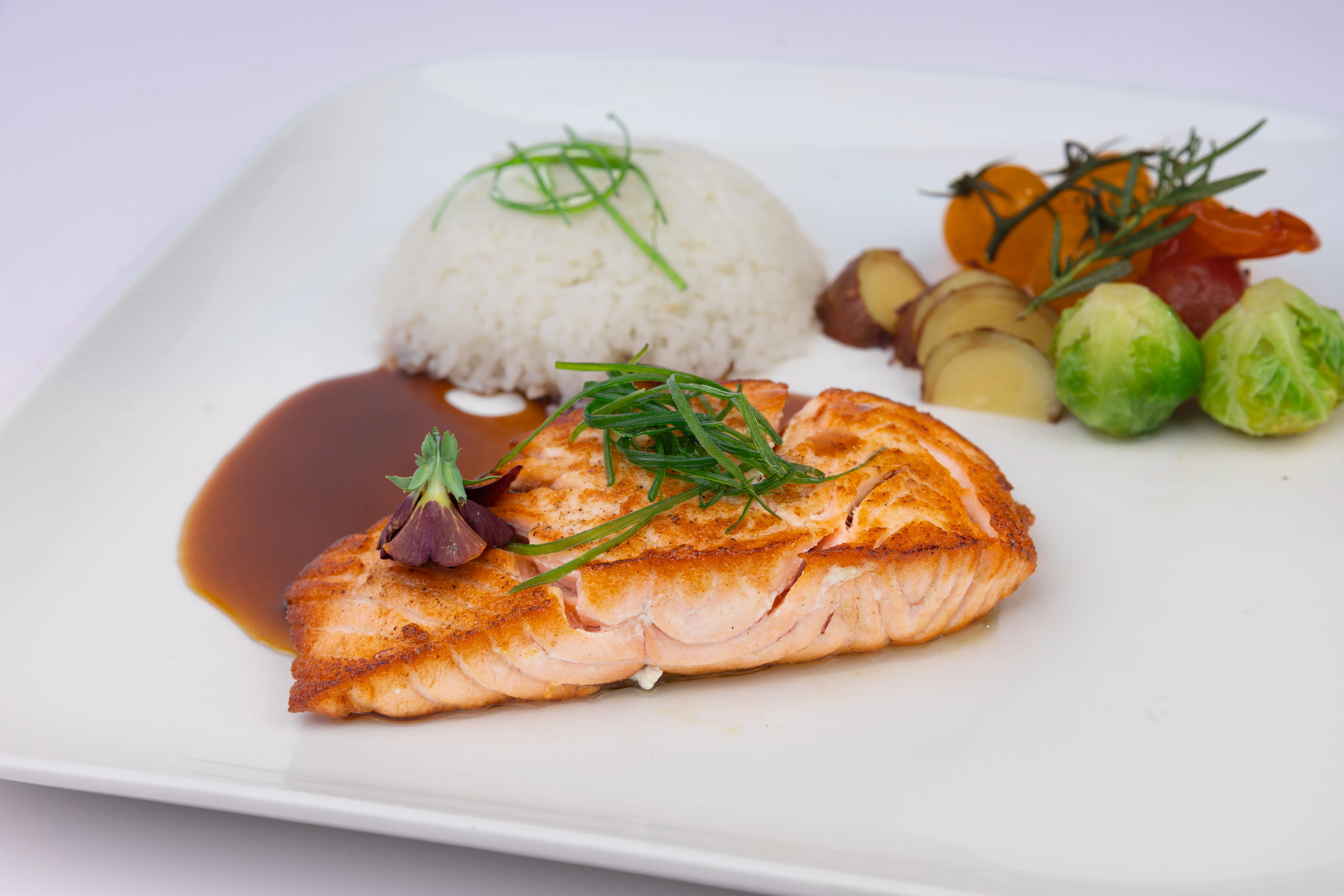 سمك السلمون ترياكي مع الأرز