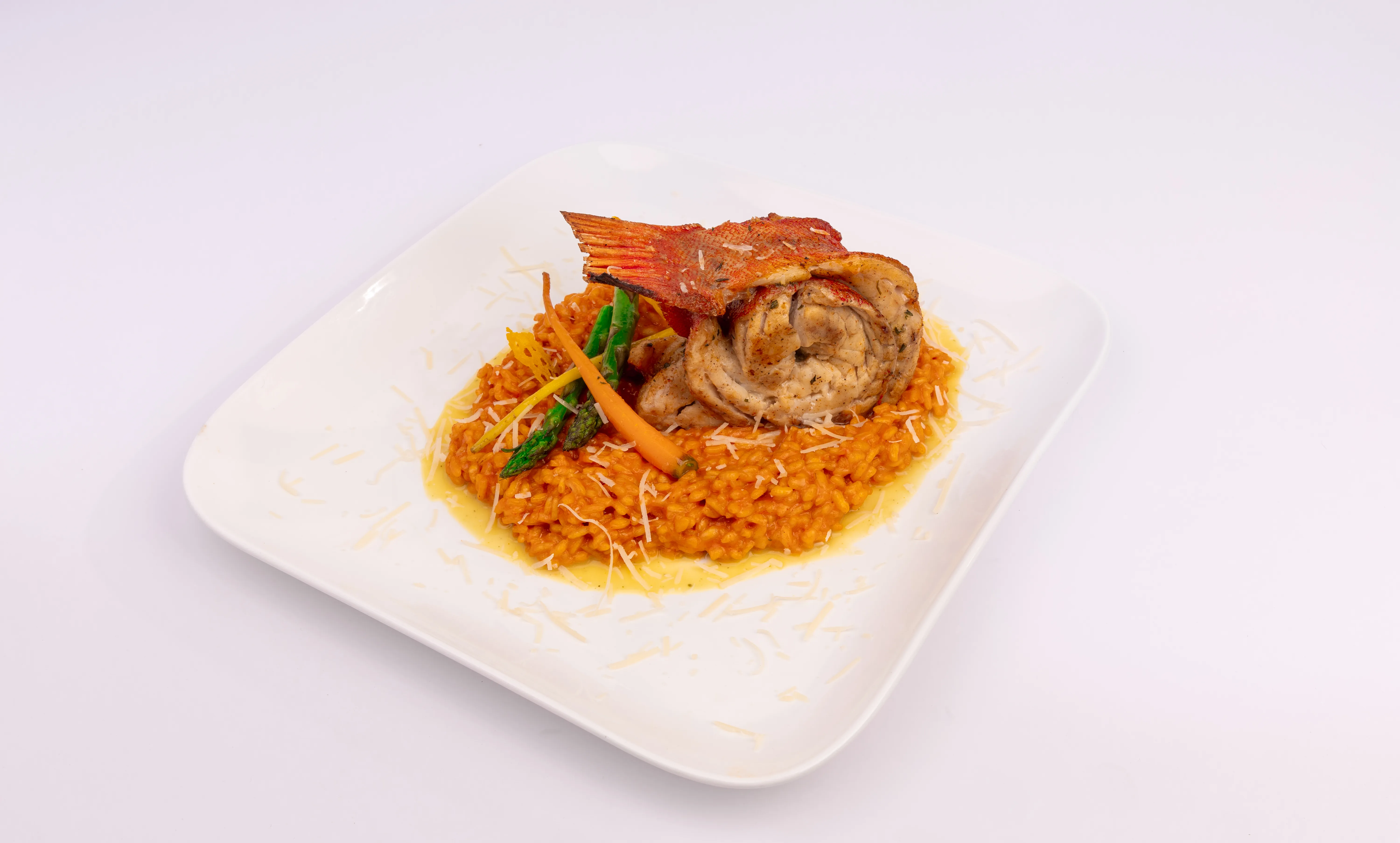 ريسوتو الطماطم الحمراء مع الروبيان والسمك